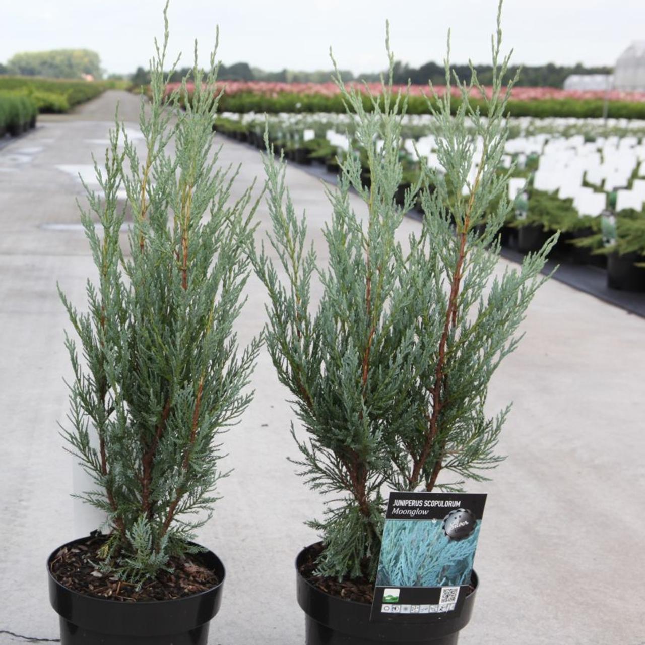 Взрослый кустарник достигает 6 м в высоту и около 1 м в ширину. Благодаря вертикальным побегам можжевельник формирует аккуратную пирамидальную узкую крону. Хвоя мягкая, густая, серо-голубая, зимой приобретает более насыщенный цвет. Крупномер скальный Moonglow светолюбив, поэтому хорошо развивается только на солнечных участках. Сорт не требователен к почвам, засухоустойчив. Саженцы используются в одиночных посадках, формировании живых изгородей и хвойных композиций.
