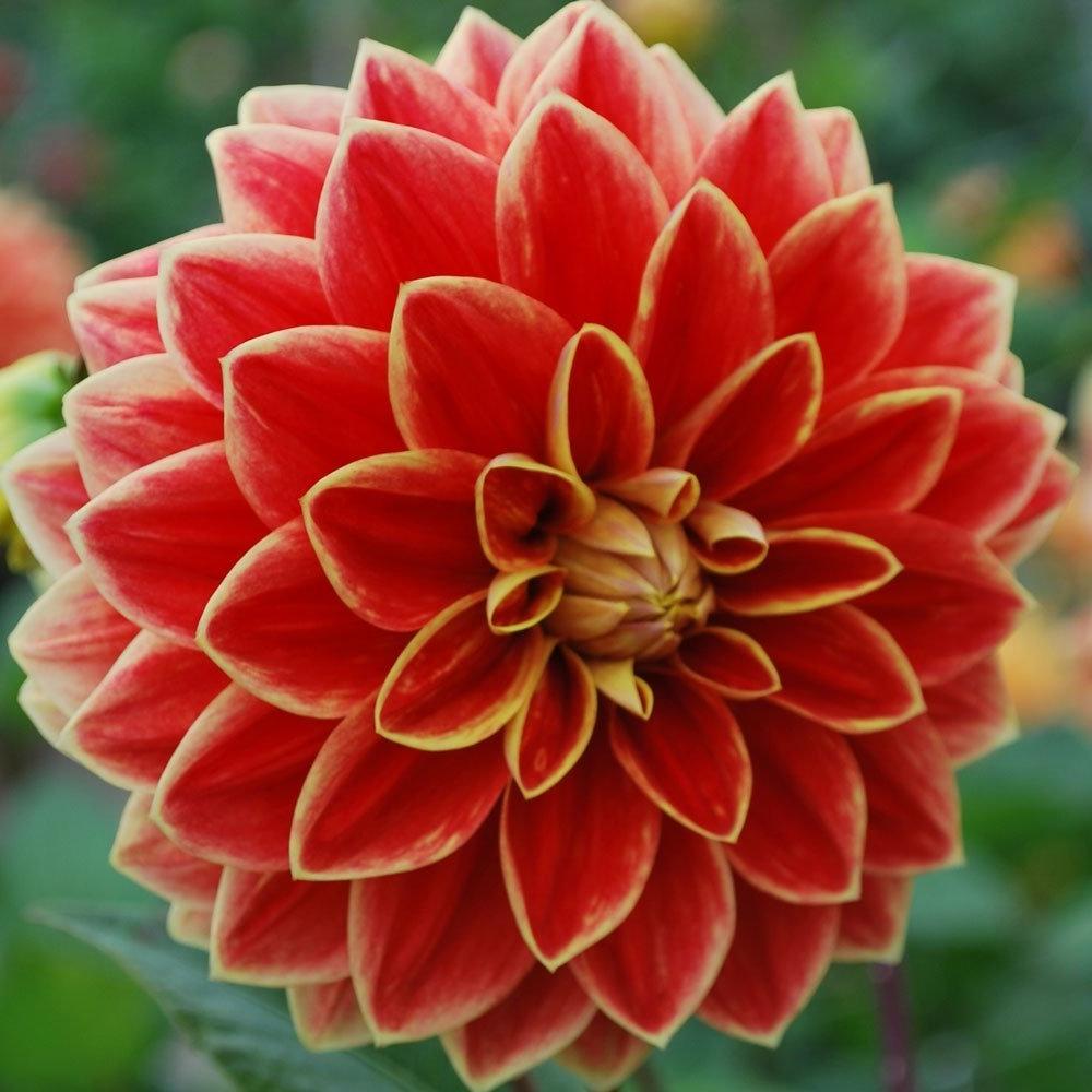 Высокорослая декоративная георгина засверкает в вашем саду словно яркий огонек. Ее темно-апельсиновые лепестки украшены желтой каймой. Это делает насыщенный оранжевый цвет бутонов еще более выразительным и глубоким. Георгина удивляет своей солнечной окраской.