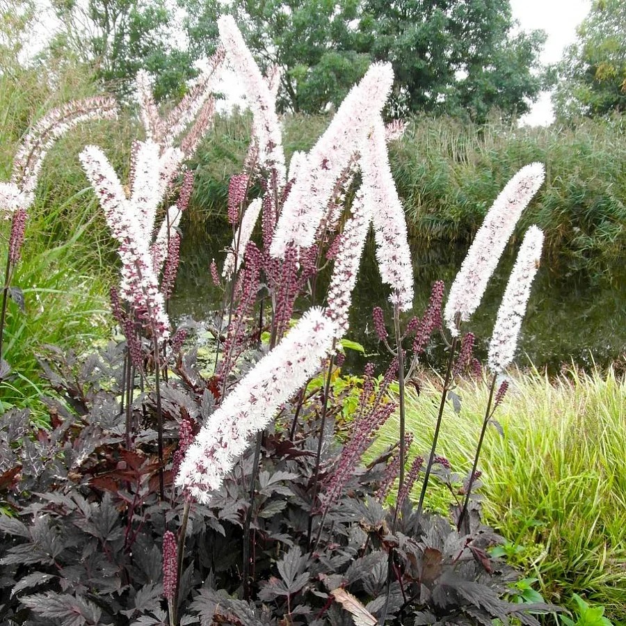 Клопогон ветвистый Атропурпуреа (Atropurpurea) лучше всего высаживать во влажную почву. Хорошо приживается в тени. Это многолетнее растение созревает три года, а цветет в конце лета. Цветы бледно-розовые. Соцветие длинное, до 40 см. Листья большие, мощные, могут быть разного цвета от темно-зеленого до фиолетового. Эти большие листья к тому же могут избавить вас от сорняков. Клопогон ветвистый Атропурпуреа - очень крупное растение , высота может достигать 160 см. Семена отличаются очень хорошей всхожестью. Всходят на шестой месяц.