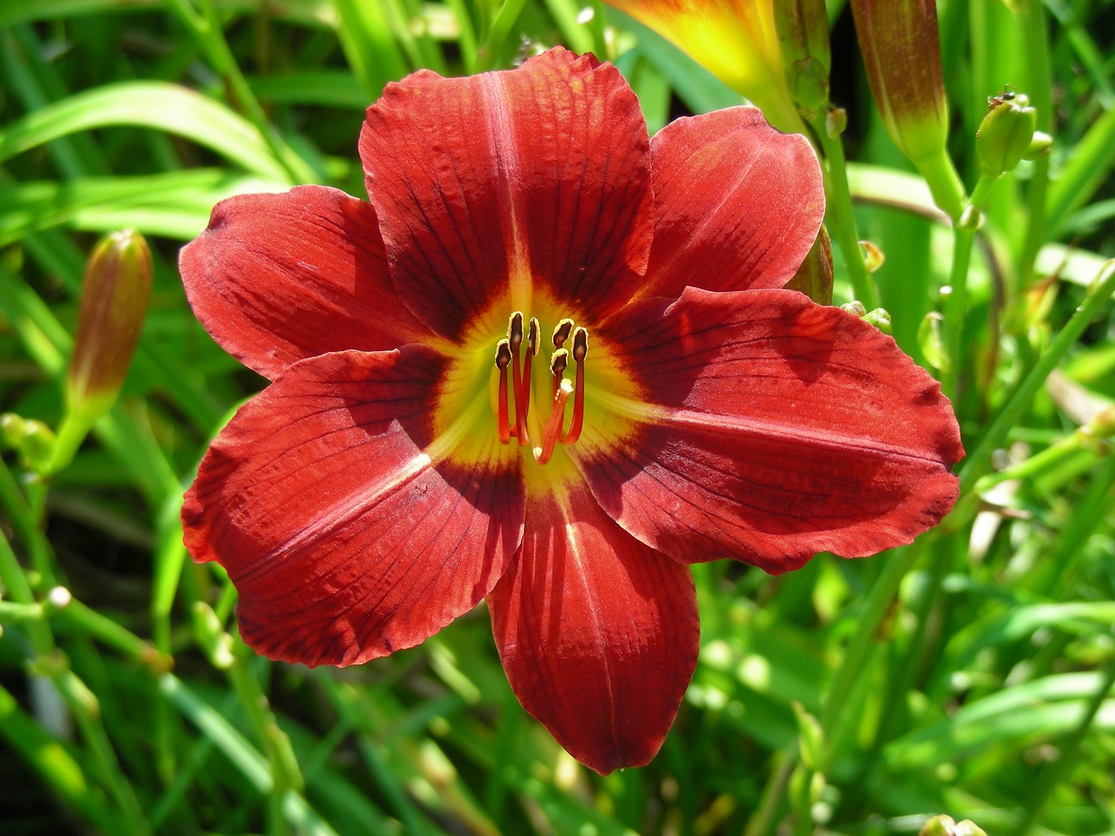 Саженцы лилейника Rеd Rum дарят ярко-красные цветы с легкой гофрировкой края. Светлая средняя линия, желто-зеленое горло – высота растения 45см, размер цветка 14 см. Цветение - июль- сентябрь. Его листва сохраняет яркость и пышность в течение всего сезона, поэтому его сочетают с другими пышно цветущими растениями. Крупномер Rеd Rum обладает сильным ароматом. Для растения предпочтительны рыхлые, хорошо дренированные, богатые органикой почвы. Световой режим полутень и солнце. Относится к полувечнозеленым растениям. Rеd Rum, как большинство лилейников, диплоид. Опыляется легко, завязывается большое количество семян.