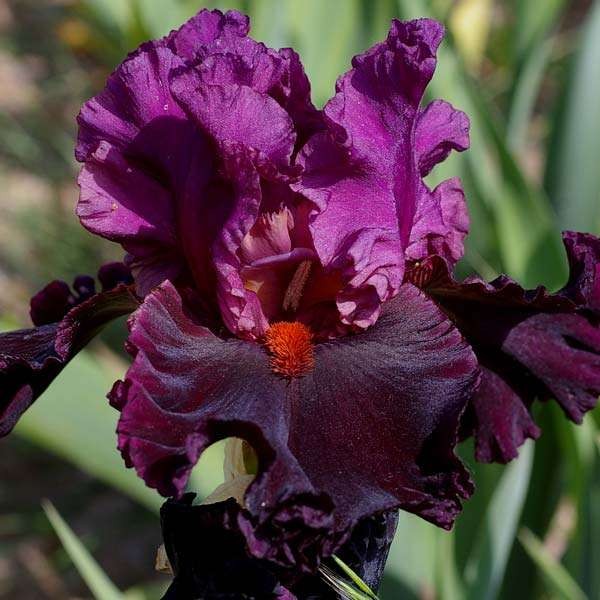 Рассада ириса Saturn гарантирует обильное цветение этого сорта высокорослых бородатых ирисов. Верхние доли (стандарты) красно-фиолетовые, свекольные, кружевные. На нижних долях (фолах) наблюдается темно-вишневая, почти черная окраска, на краях лепестка светлеющая до темно-бордового цвета. Бородки – огненно-оранжевые. Лепестки матовые, бархатные, с сильной гофрировкой.
