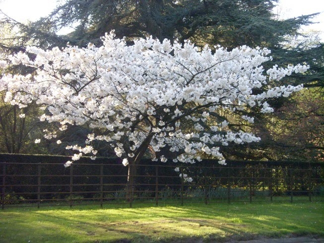 Саженцы Вишни мелкопильчатой Тайхаку (Taihaku) ещё называют японской сакурой, впервые были вывезены из Японии в 1900 г. Вырастают в декоративное невысокое дерево, достигающее не более 10 метров во взрослом возрасте. Особенно красиво смотрится в период цветения, когда распускаются белые цветы. Вишня требовательна к месту посадки, крупномеры необходимо высаживать в местах, куда поступает максимальное количество солнечного тепла и света. Период цветения длится на протяжении всего апреля. Листья меняют расцветку на протяжении периода с весны до осени, от коричневого до желтого оттенков.